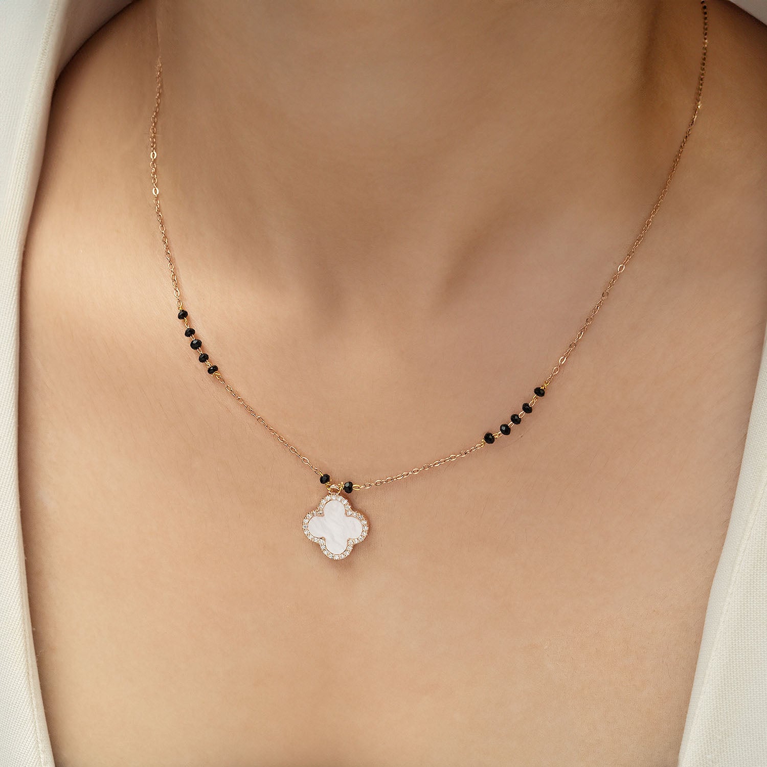 Mother of Pearl Magnetic Clover Heart Necklace