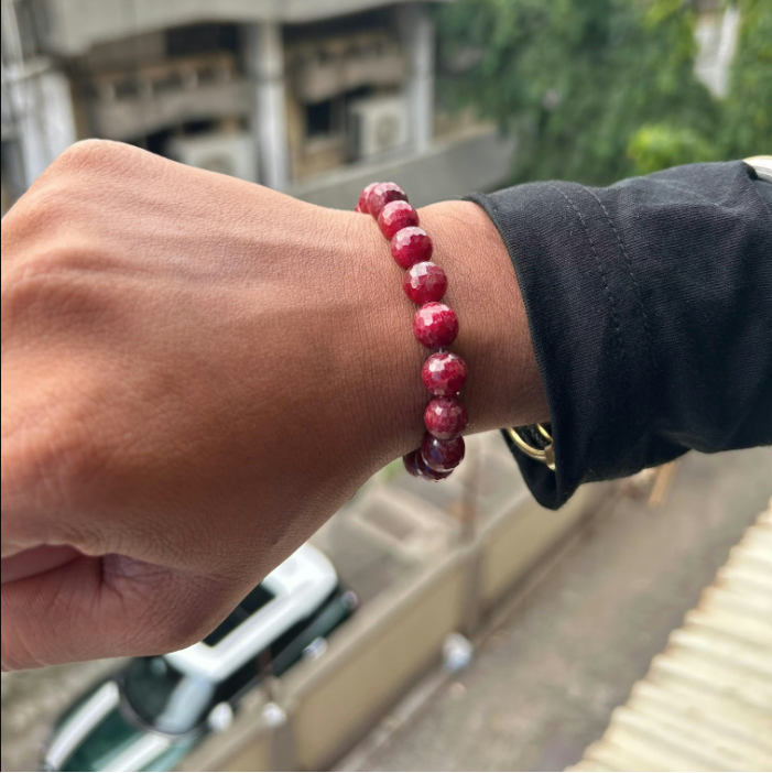Wearing this ruby bracelet feels good and adds a nice touch to any outfit.