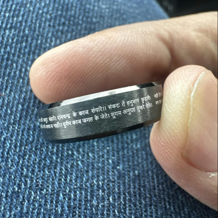 - Innovative Design: Beveled ring featuring the Om Namah Shivay verse.