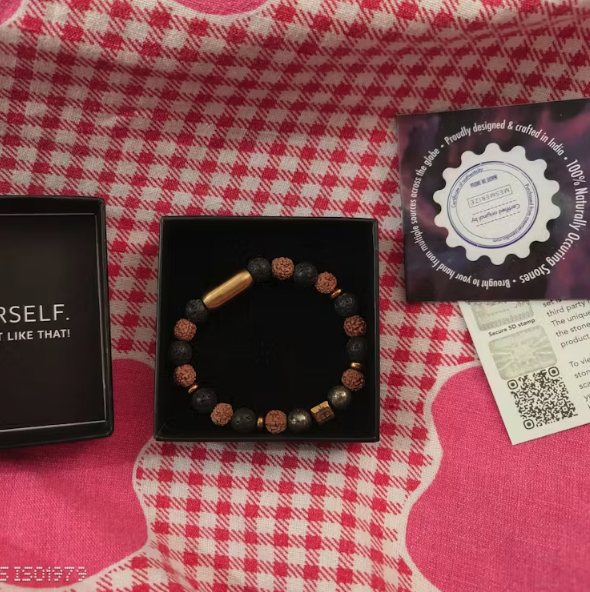 Using beads such as rudraksh (from trees 🌳), lava stone (from volcanoes 🌋), tiger eye stone (from earth's crust 🪨) & onyx (from caves ⛰️) you are truly wearing a part of mother natural.